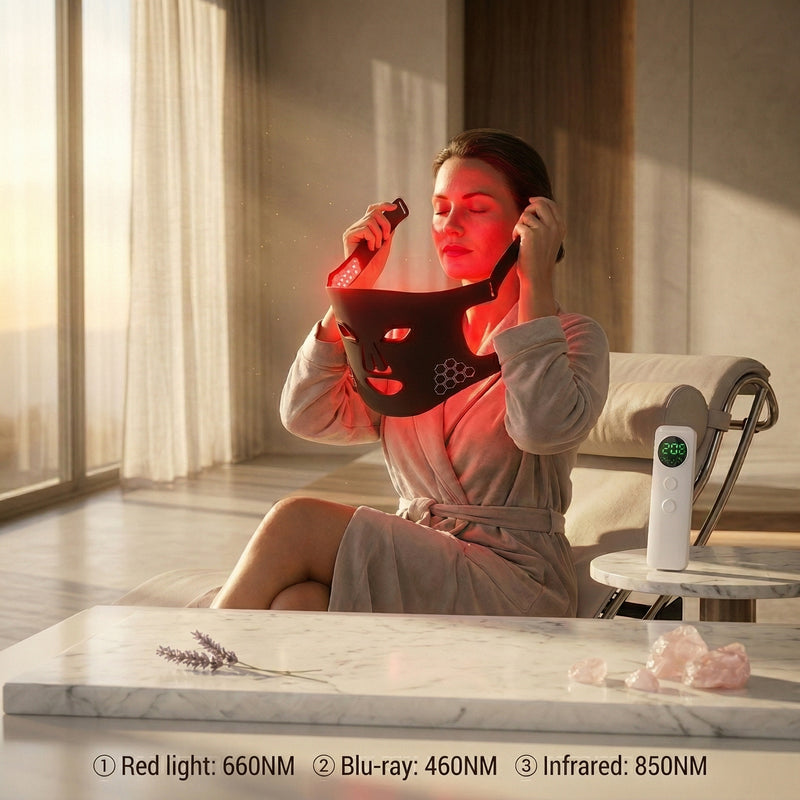 The ultimate red light therapy mask combining three powerful wavelengths for professional results at home.